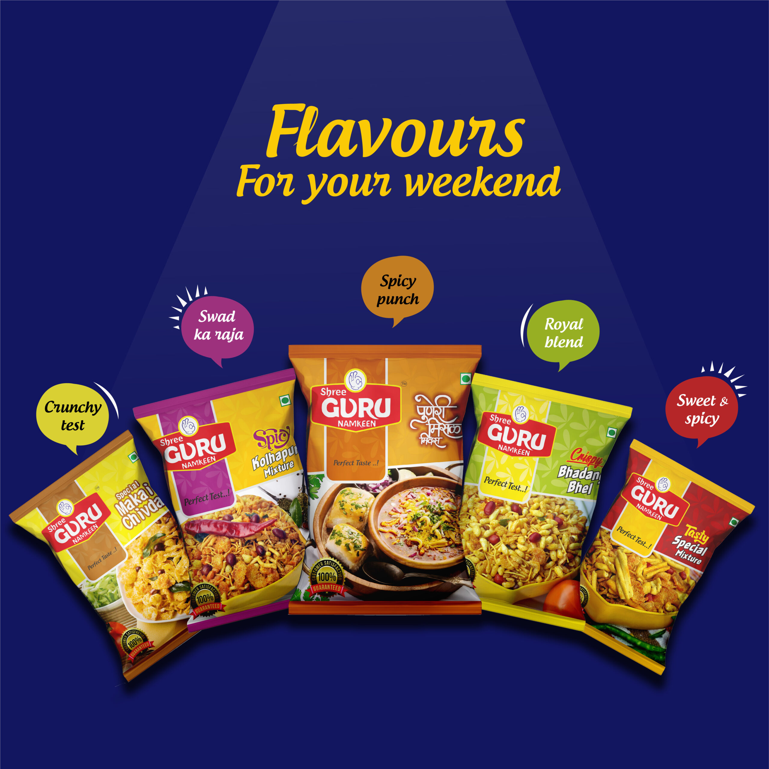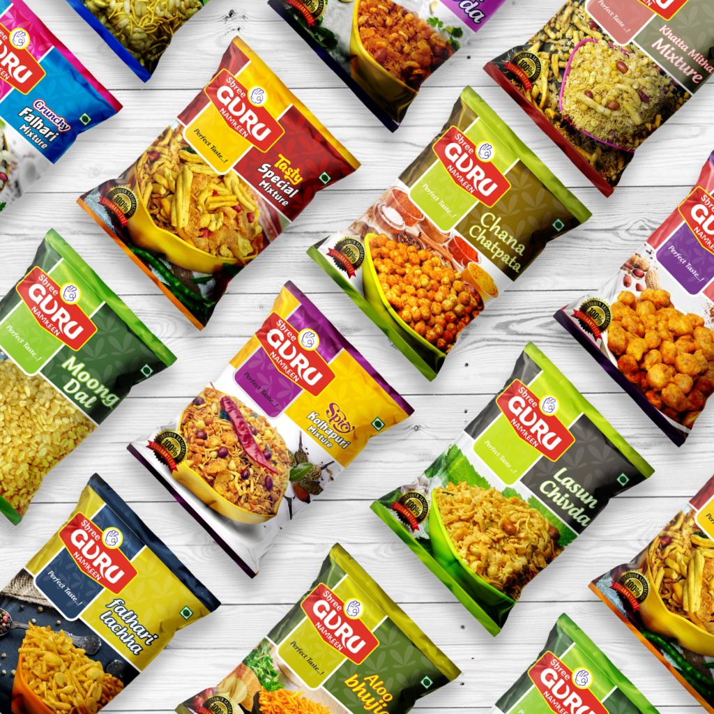 Challenges we faced :- When a brand like Guru Namkeen approached us, we faced mixed emotions and excitement; we were also responsible for maintaining their treasured traditional values and culture. When they came to us, we knew the brand identity and recall status were high, but our creative challenge was taking it to another level high with revised packaging.